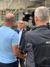 Bald zieht hier neues Leben ein - im denkmalgeschützten Industriebau GOLDE. 60 barrierefreie Wohnungen sind fast fertig. Das beeindruckende Haus war die erste Arbeit des Architekten Thilo Schoder in Gera.
